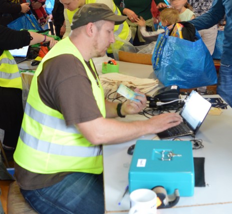 Unsere Helfer sortieren diese dann wieder auf die Verkaufstische zurück.